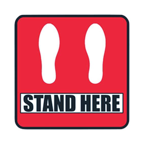 "Stand Here" Safety Sign, Square Red, 4" Efficiently help enforce social distancing rules in the...