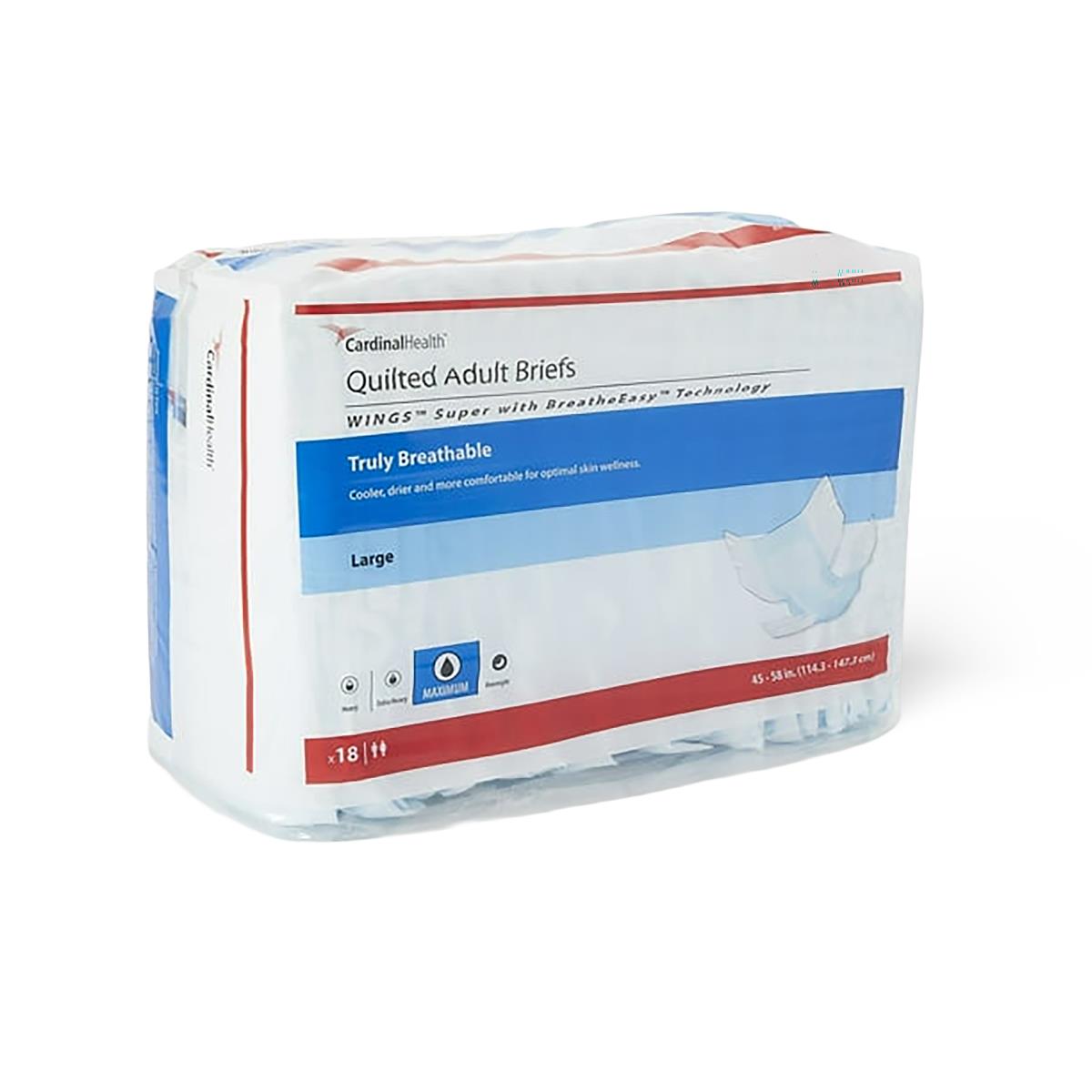 Cardinal Health Wings Super Quilted Maximum Absorbency Adult Briefs Superquilted, bariatric briefs with heavy-duty panels...