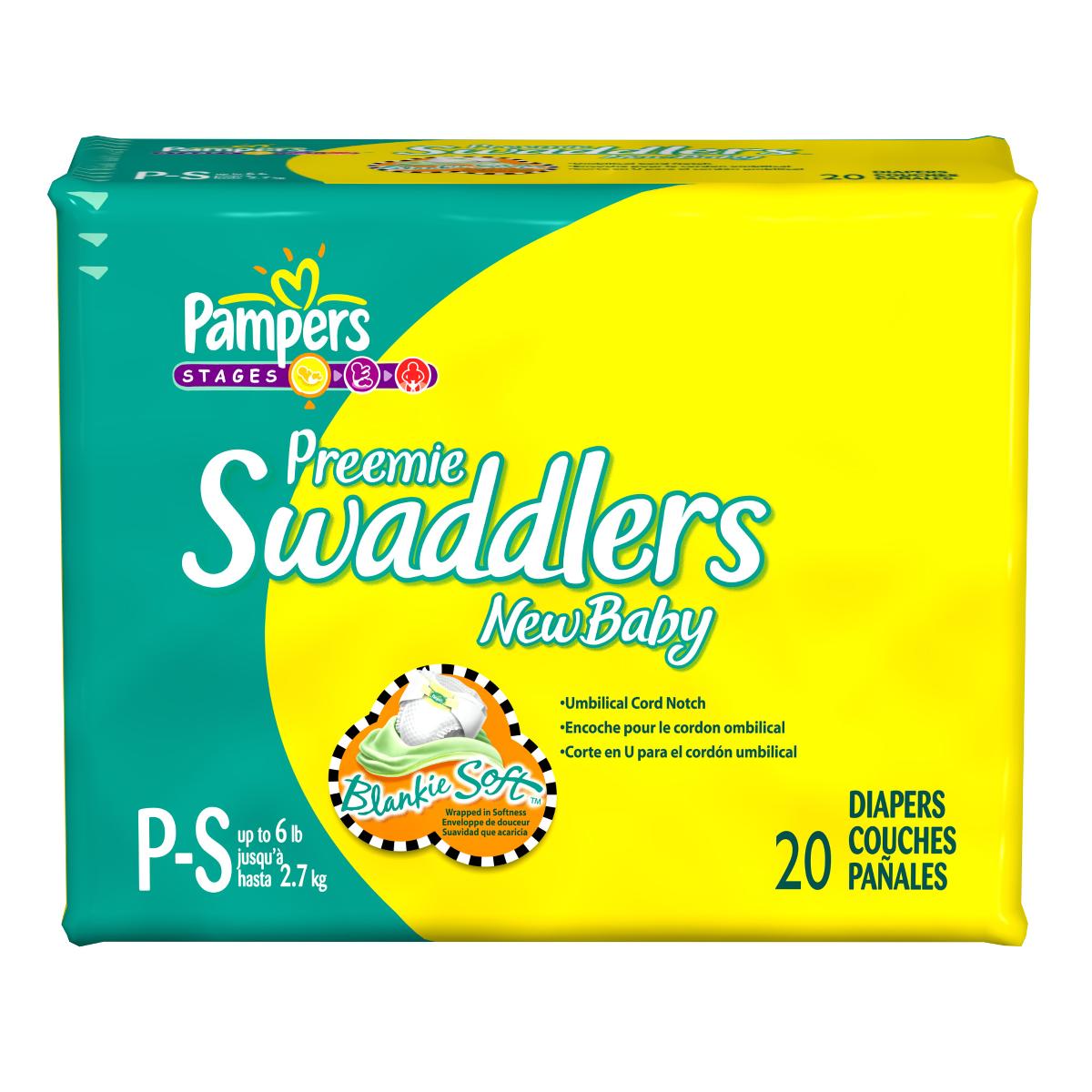 Pampers Swaddlers Diapers, Preemie, Size P-S, up to 6 lb. (2.7 kg), 20 Count