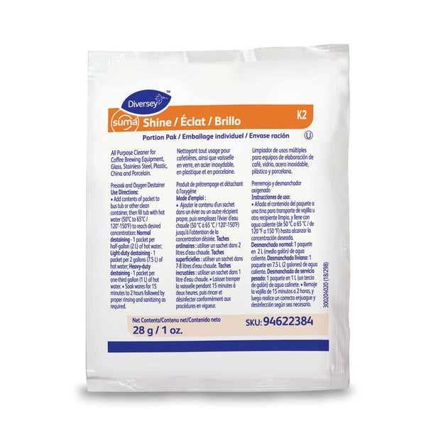 Suma Shine Portion Pak K2 Powdered Presoak and Destainer, 1 oz. Packets Oxygen-based, powdered presoak...
