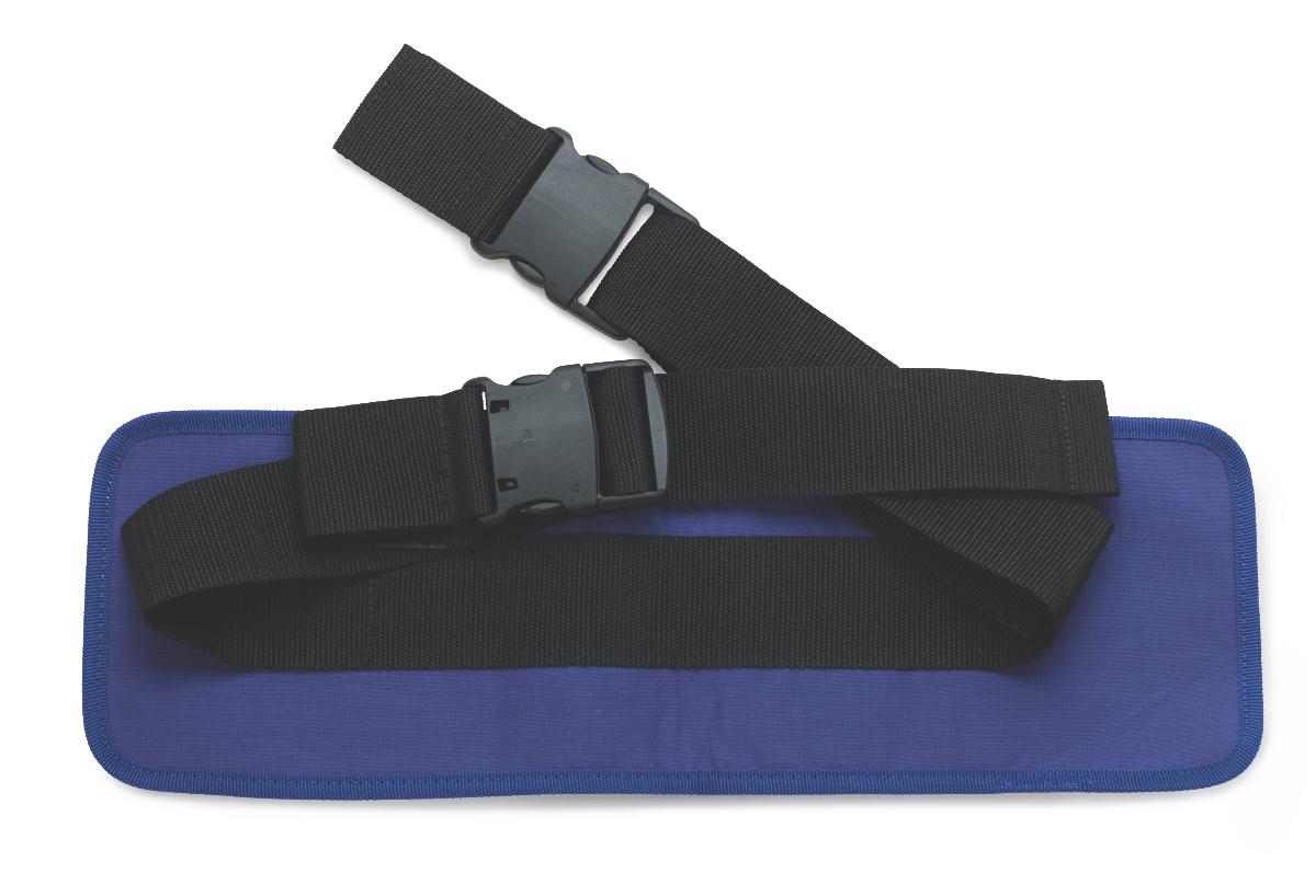 - Belt attaches to a stand assist knee pad to help prevent individuals from stepping off the footplate when being transferred