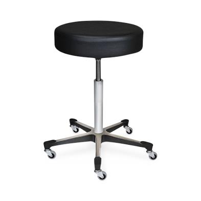- Spindle-adjusted exam stool are mobile stool with a backrest that rests on a 24"-diameter, 5 leg base and moves on 2" hard rubber casters