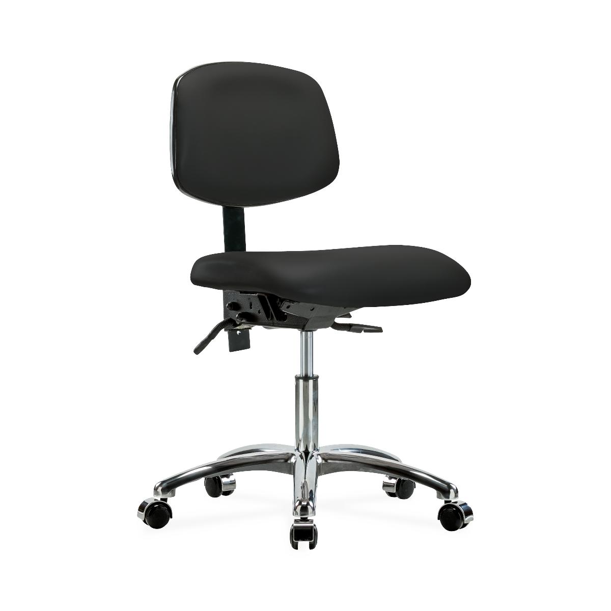 - Plus, chair has casters, black vinyl, chrome foot ring, and tilt seat back
