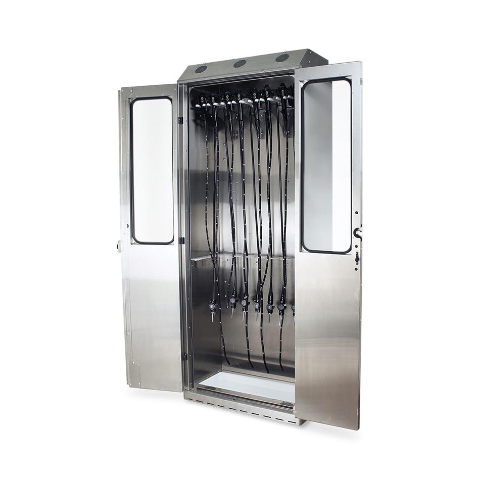 - Storage cabinet designed to hold and protect up to 16 scopes in secure station location