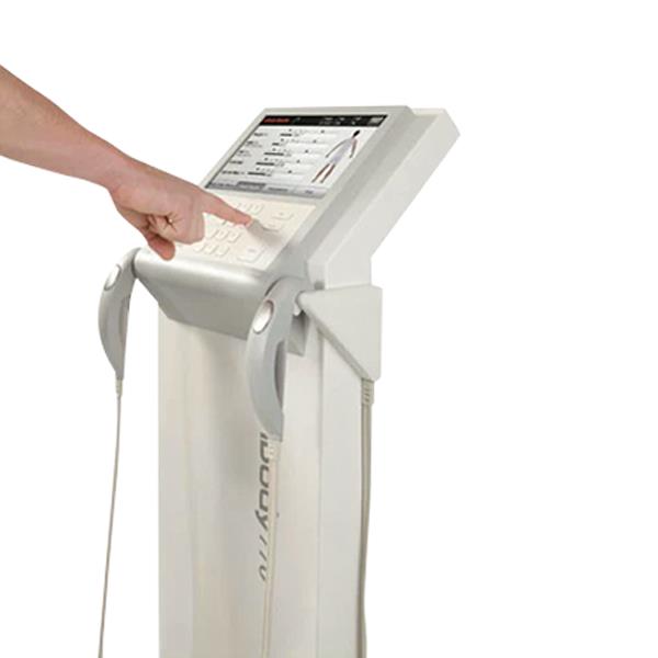 - Auto-calibrated, user-friendly, and noninvasive testing is fast and easy; simply stand on the device and hold the hand electrodes