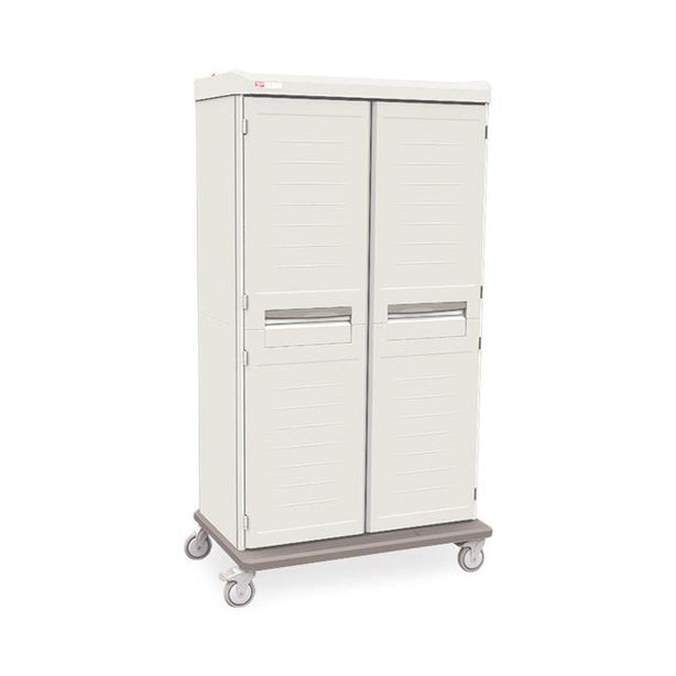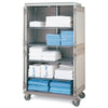 - Cart consist of four stationary shelves, non-locking 270 degree swing doors, 5" (127mm) polyurethane swivel casters (two with brakes)