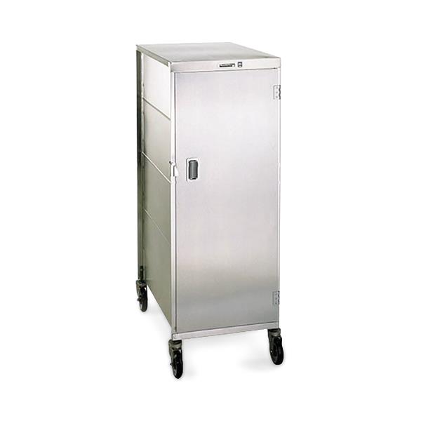 Tray Delivery Cart, Enclosed, Single Door, Single Compartment, 14" x 18" Tray Capacity, 2 Trays/Ledge, 6" Spacing, 27° Door Swing, 5" Swivel Casters, 2/3 Stainless Steel Construction
