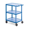 - Three-tier utility cart featuring 2.75" deep tub shelves to prevent items from sliding off