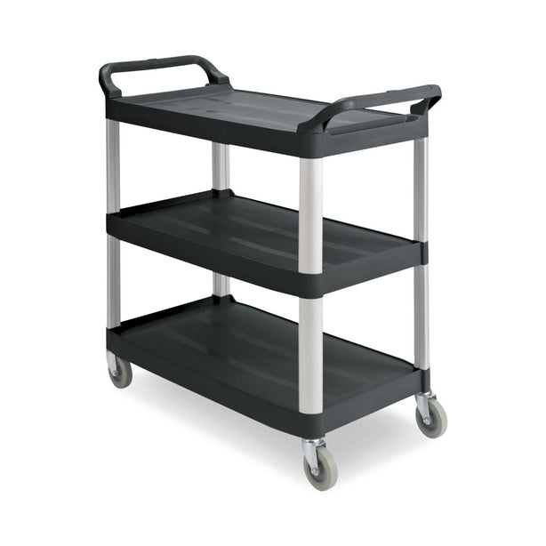 Utility Cart, Black, 300 lb. Capacity Aluminum uprights provide excellent stacking strength Polypropylene plastic shelves...