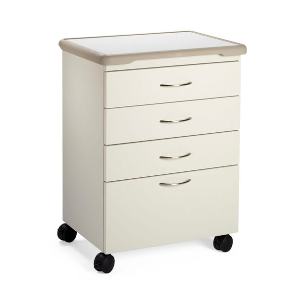 Mobile Treatment Cabinet, (3) 4" Drawers, 8" Drawer, 18" Deep, 4"Casters With Locks. Dune (W).Kydex, Contour Profile