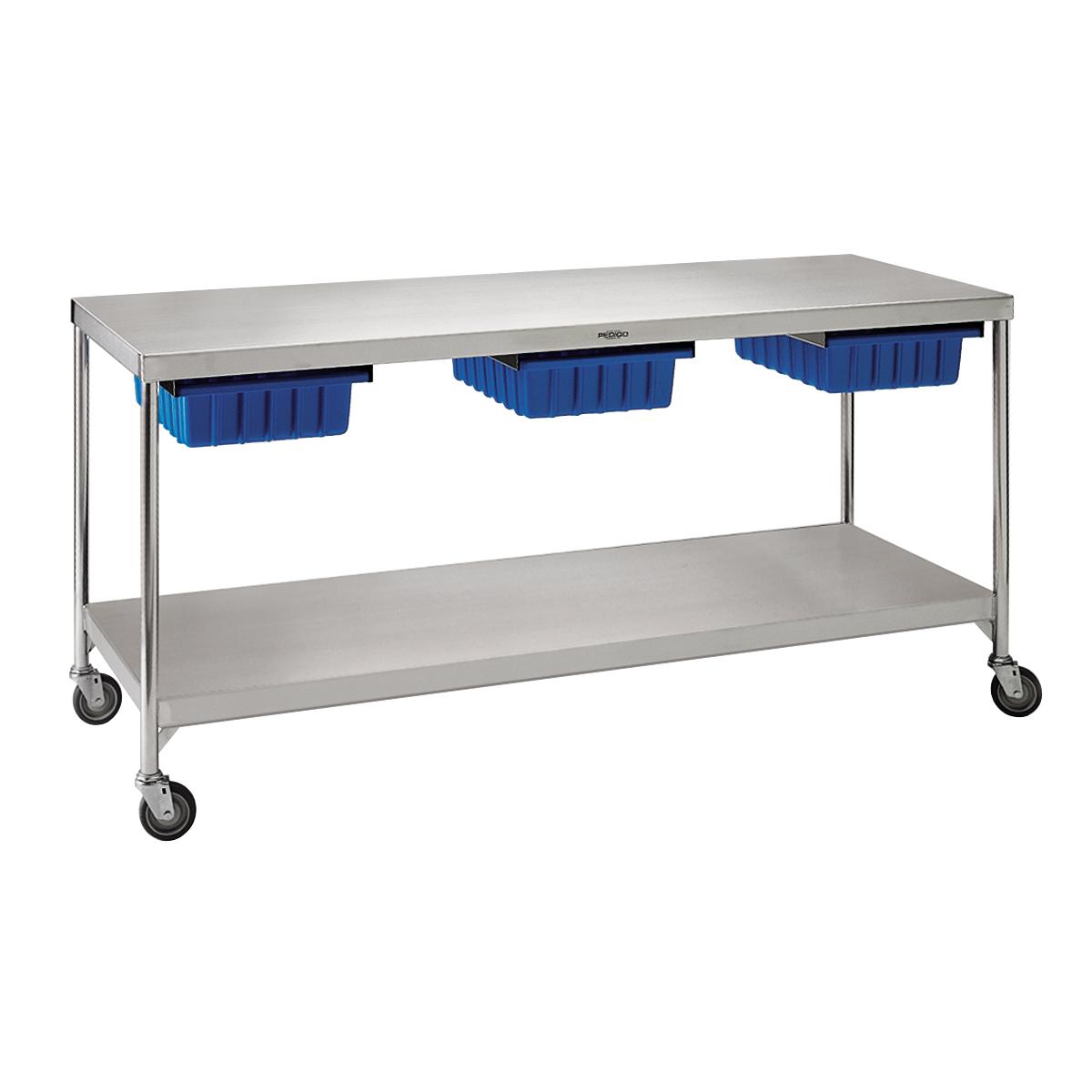 Stainless Steel Central Supply Table with Tote Boxes, Shelf and Casters, 84" x 36" x...