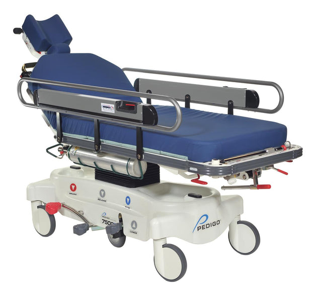 - Hydraulic foot pedals are located on each side of the stretcher within the patient care zone; color-coded pedals and function graphics are easy to understand