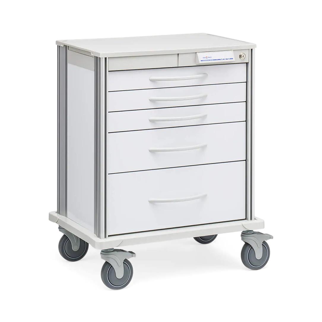 Pace 24 Cart with 5 Drawers, White Case, Sunset Orange Drawer Removable antimicrobial surface, so...