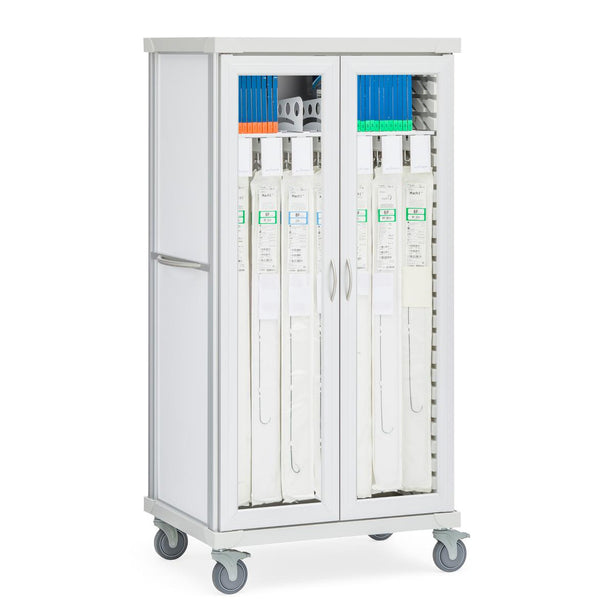 - A lightweight aluminum case, easy-grip stainless steel handle and lockable 5" medical-grade casters make the carts easy to maneuver around a busy facility