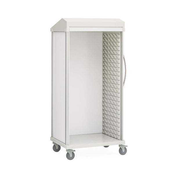 - Roll-top door track is located on the outside of the cart, so interior storage space is not compromised
