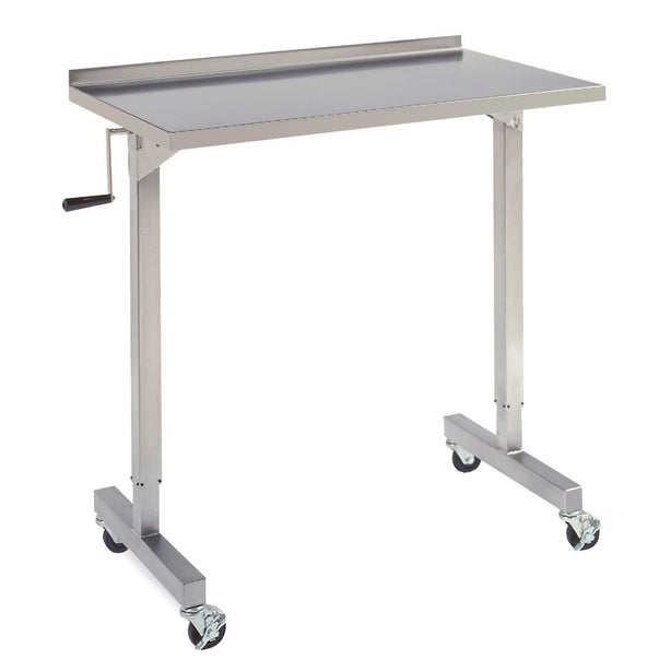 Suburban Surgical Co Inc Adjustable Instrument Table Stainless steel instrument table is height-adjustable thanks to...