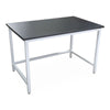 Solid-Top Epoxy-Resin Work Station Tables engineered for heat deflection with beveled edges for improved safety...