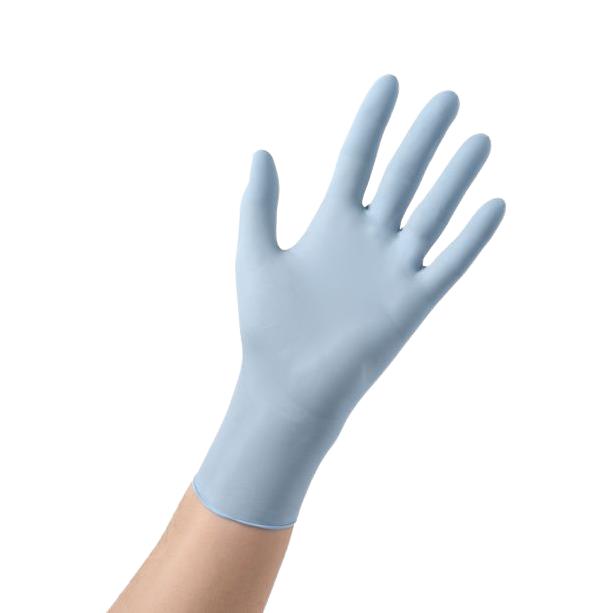 - Powder-free, nonsterile nitrile exam gloves with textured fingertips and improved elongation