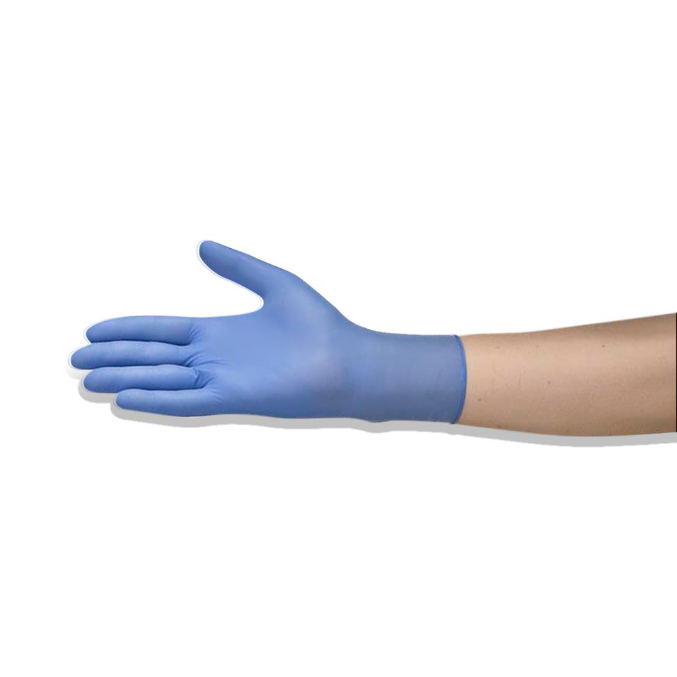 - Powder-free, nonsterile nitrile exam gloves with textured fingertips and improved elongation