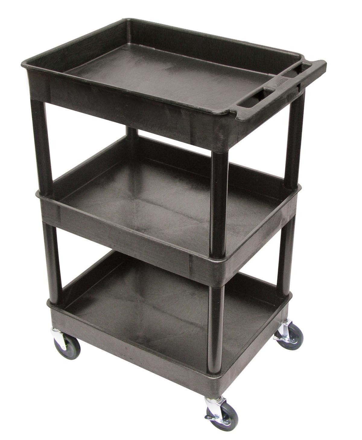 3 Shelf Polyethylene Tub Cart with 4" Casters, 24"W x 18"D x 38-1/2", BlackTRUE3 & 4 Shelf Carts by MMC - STC111BLK - 1 Each