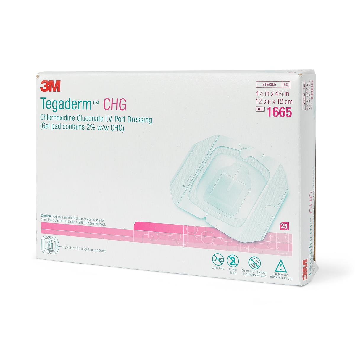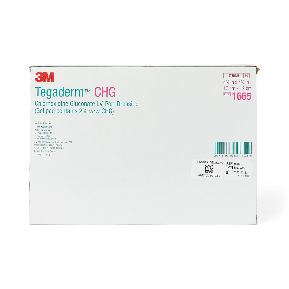 3M Tegaderm CHG Chlorhexidine Gluconate IV Port Dressings 1665 - 25.0 Each