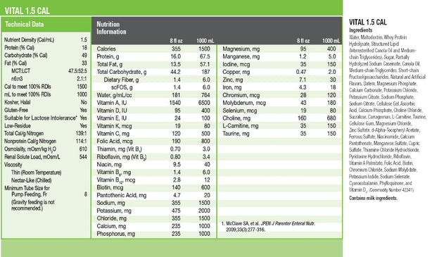 Abbott Vital 1.5 Cal Nutritional Supplement Ready-to-hang enteral feeding container Therapeutic nutrition contains milk ingredients...