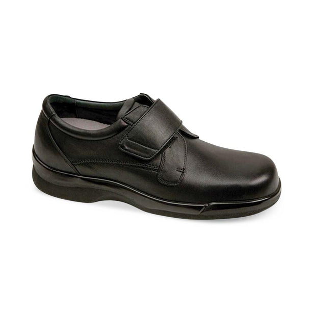 Ambulator Men's Leather Shoes with Hook-and-Loop Closure, Black, Extra-Wide Width, Size 11.5