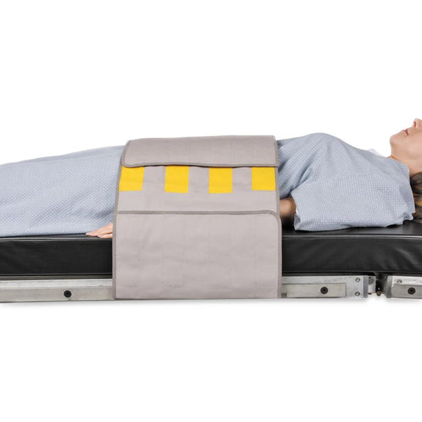 - Band with hook-and-loop fits around patient and narrow, contoured tabletop