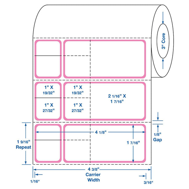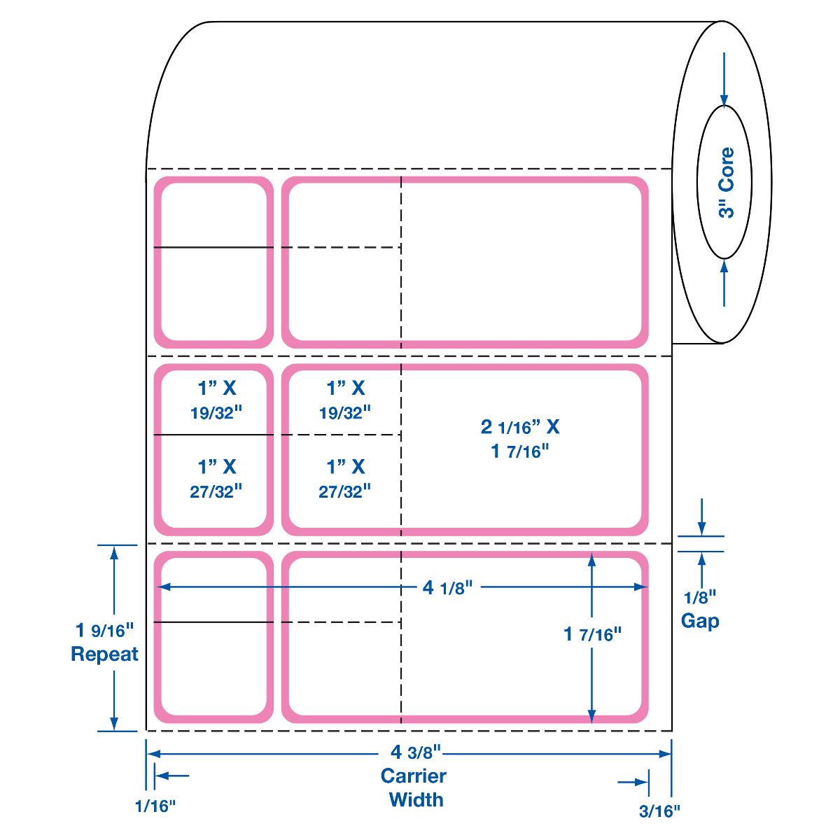 Direct Thermal Printer Label, 4-1/8" x 1-7/16", Hot Pink Border