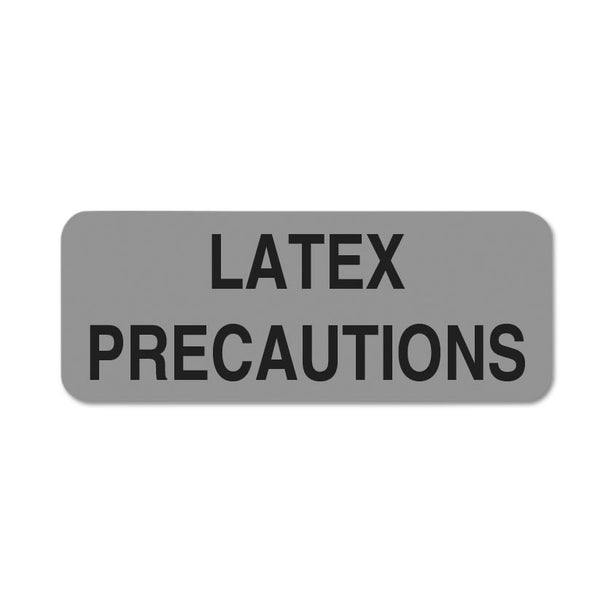 Latex Precaution Label Label alerts staff and visitors to possible latex issues Bright orange coloring...