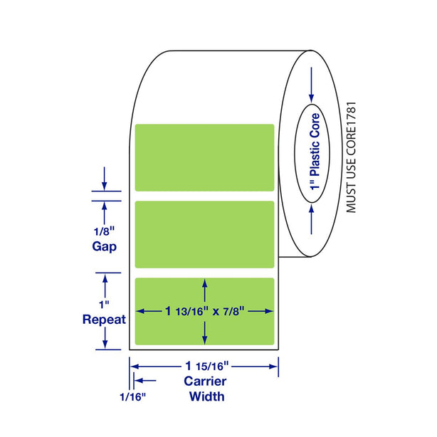 Direct Thermal Printer Label, 1-13/16" x 7/8", 2900/Roll, Light Green Blank labels Bright green coloring...