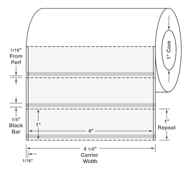 Quattro Rx Label, Perforated with Black Bar, 4" x 1", 1500/Roll Barcodes won't fade, smudge...
