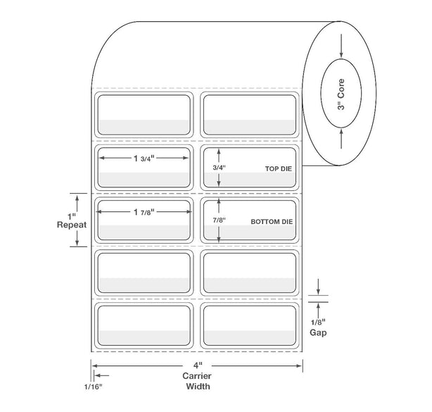 Direct Thermal Printer Label, 1-3/4" x 3/4", 8000/Roll, Yellow / White