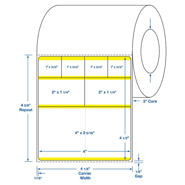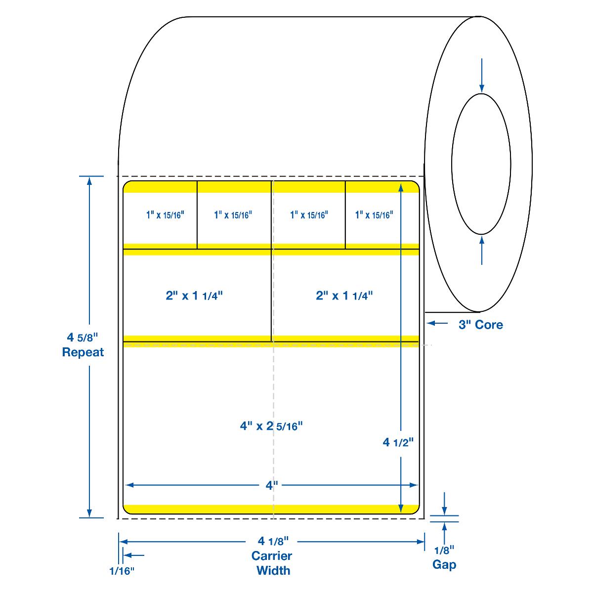 Cerner Direct Thermal Labels, Yellow Border, 4" x 4-1/2" (10.2 cm x 11.4 cm), 1000/Roll