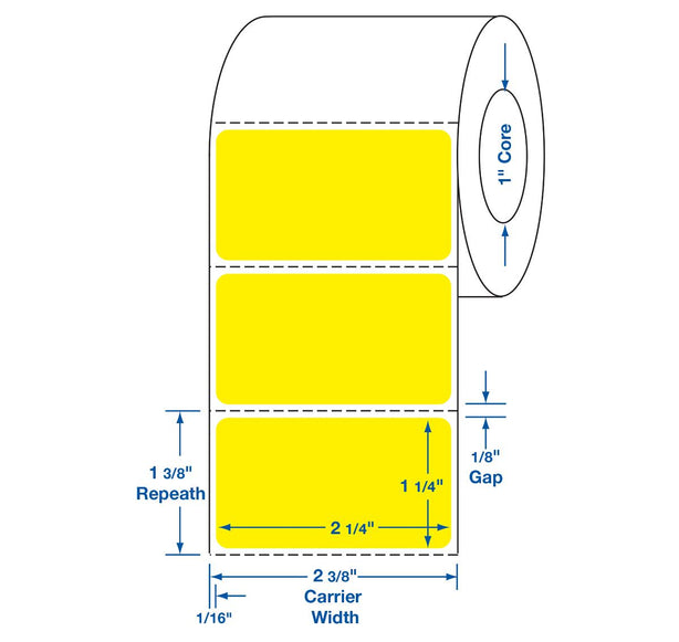 Blank Label, 2-1/4" x 1-1/4" 2000/Roll, 12 Rolls / Box Yellow Direct thermal labels designed...