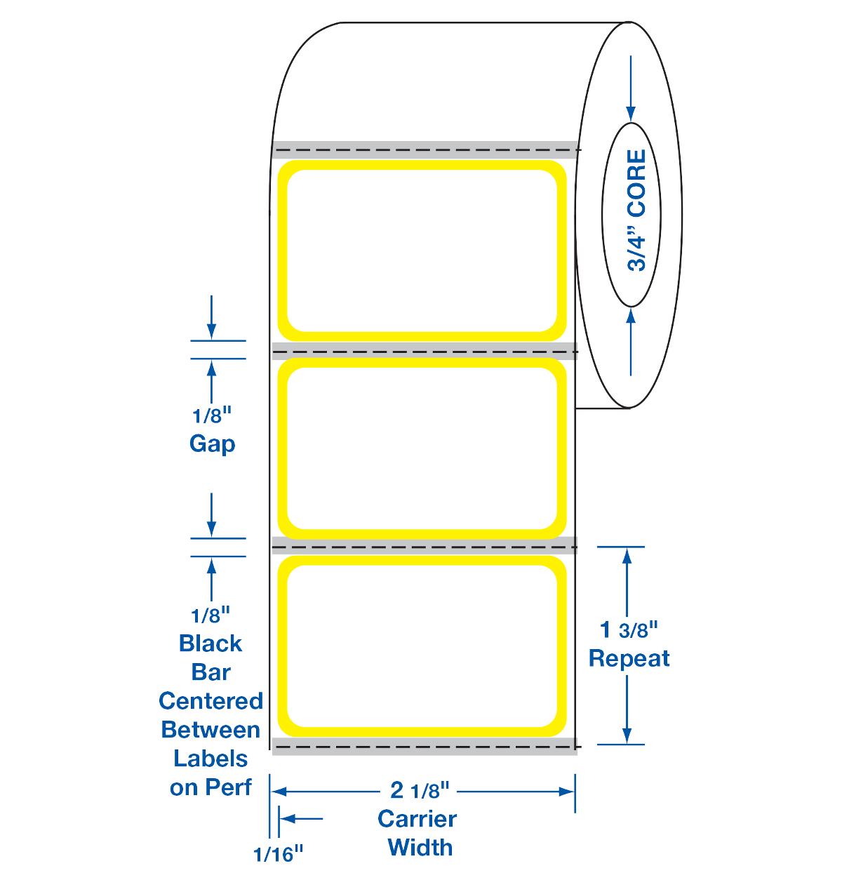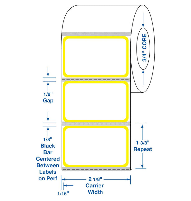 Bar Label, 2" x 1-1/4" (5.1 cm x 3.2 cm), Yellow Border, 290/Roll