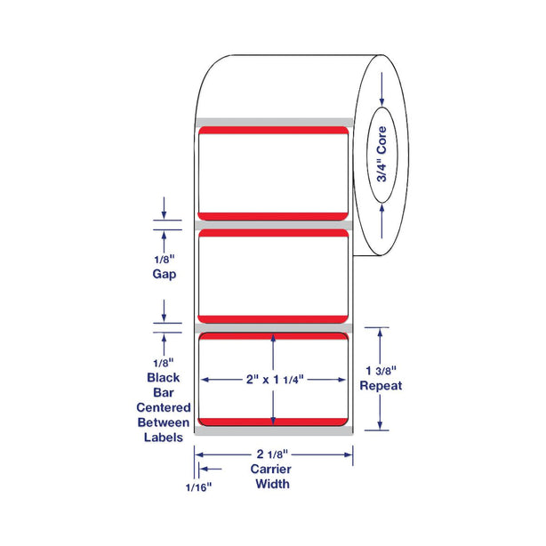 Bar Label, 2" x 1-1/4" (5.1 cm x 3.2 cm), Red, 350/Roll Direct thermal labels...