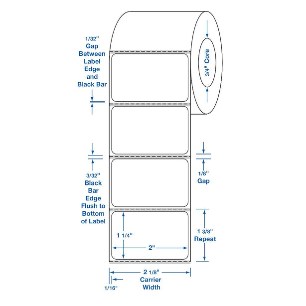 Bar Label, Black, 2" x 1-1/4" (5.1 cm x 3.2 cm), 280/Roll Direct thermal labels...