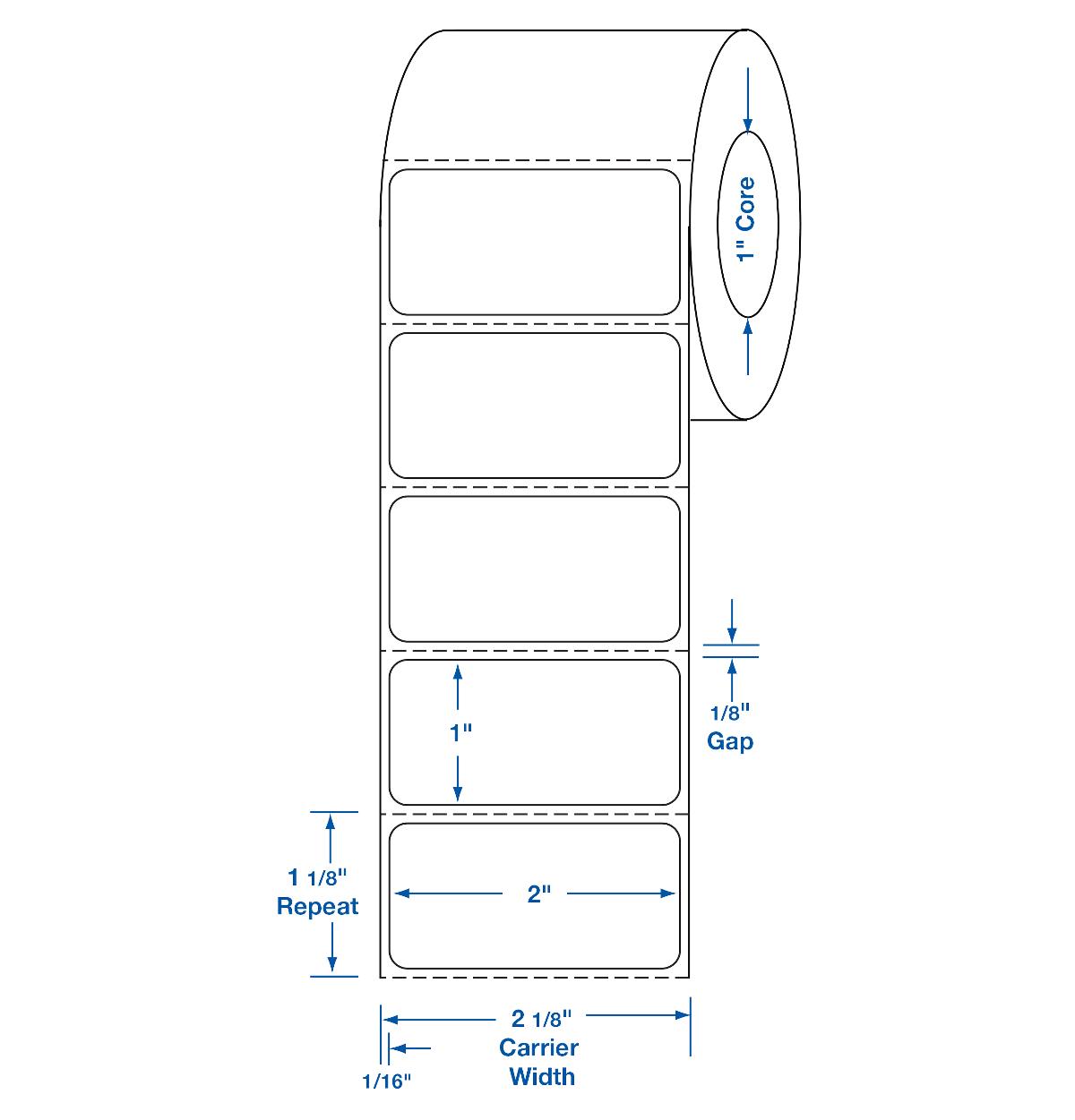 Blank Label, 1" (2.5 cm) Core, 2" x 1" (5.1 cm x 2.5 cm), 1375/Roll