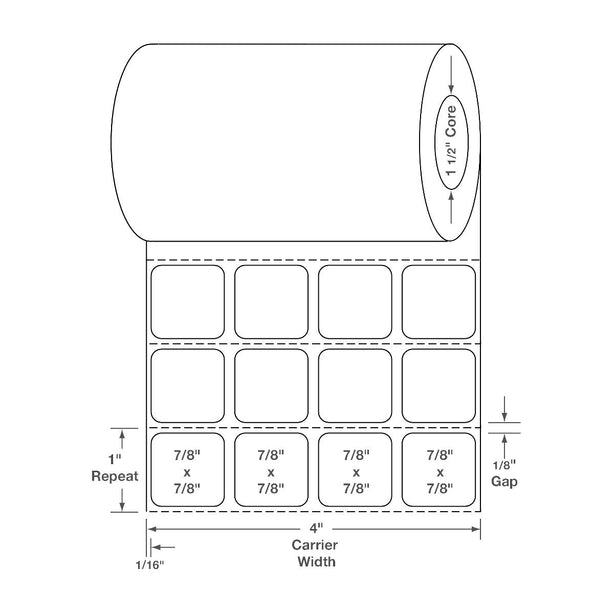 Centurion Labels: Centurion Poly Thermal Transfer Labels, 7/8" x 7/8" (2.2 cm x 2.2 cm), 4 Across, 4000/Roll TTL475 - 8.0 Roll