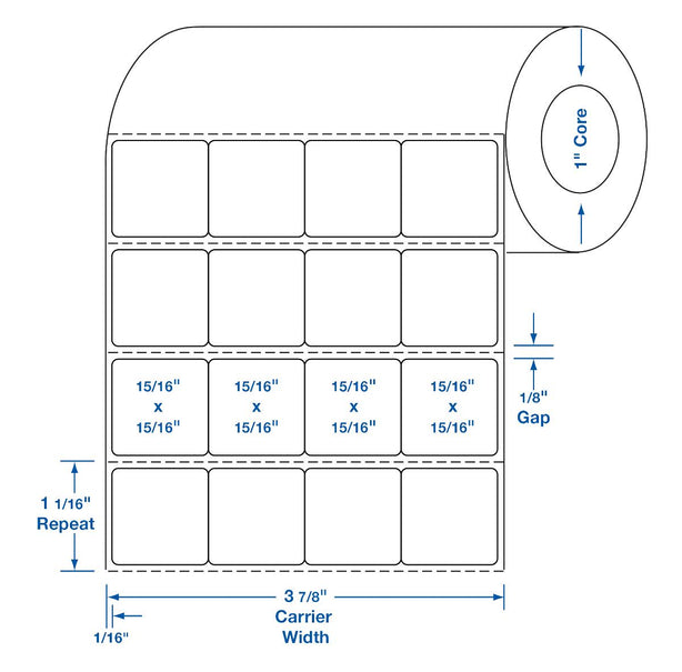 Centurion Labels: Direct Thermal Printer Label, 15/16 x 15/16", 4-Across 4000/Roll - DTL794