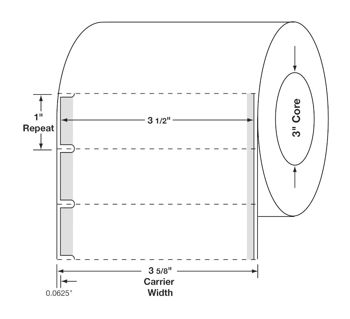 Centurion Labels: Quattro Rx Syringe Specifications Label, Perforated with Notch, Yellow, 3-1/2" x 1", 1135/Roll
