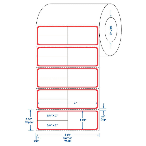 Meditech Direct Thermal Labels, Red Border, 4" x 1-1/4" (10.2 cm x 3.2 cm)
