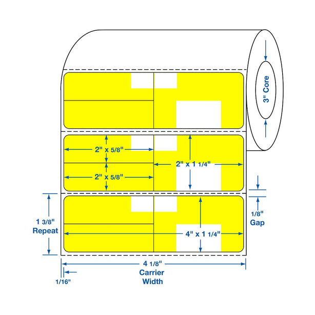 Meditech Direct Thermal Labels, White / Yellow, 4" x 1-1/4" (10.2 cm x 3.2 cm)