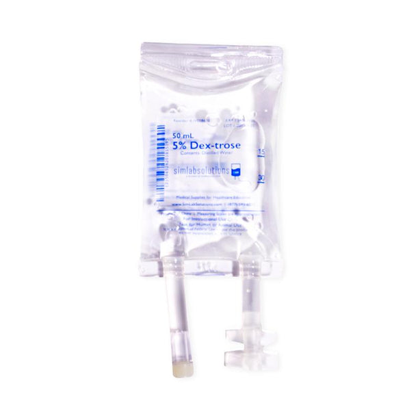 - Simulation IV bag labeled "0.9% Sod Chlor-ide" and "5% Dex-trose" are designed for healthcare education