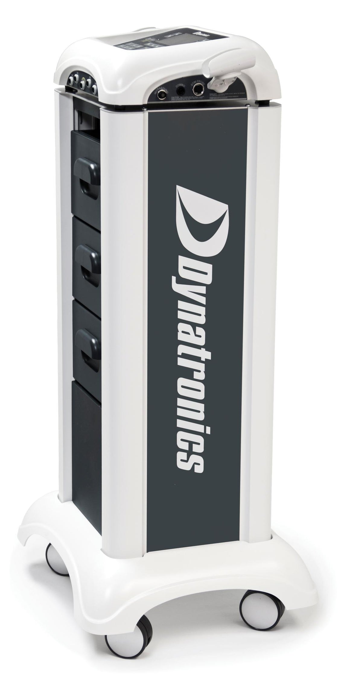 - The Dynatron Solaris Plus cart has 3 drawers big enough to store cords, pads, probes, electrodes, and other treatment supplies