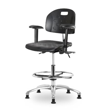 Class 100 Cleanroom Newport Polyurethane Medium Bench-Height Chair, Adjustable Height, 19.5" to 27.5" H, No Seat Tilt, Adjustable Armrests, Chrome Foot Ring, Glides, Black