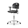 Class 100 Cleanroom Newport Polyurethane Medium Bench-Height Chair, Adjustable Height, 19.5" to 27.5" H, No Seat Tilt, Adjustable Armrests, No Foot Ring, Casters, Black