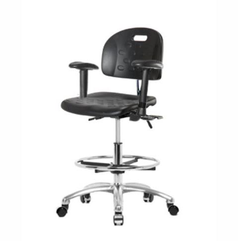 Class 100 Cleanroom Newport Polyurethane Medium Bench-Height Chair, Adjustable Height, 19.5" to 27.5" H, Seat Tilt, Adjustable Armrests, Chrome Foot Ring, Casters, Black