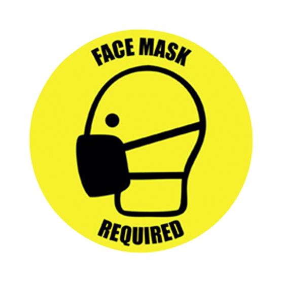 "Face Mask Required" Safety Sign, Round Yellow, 12"